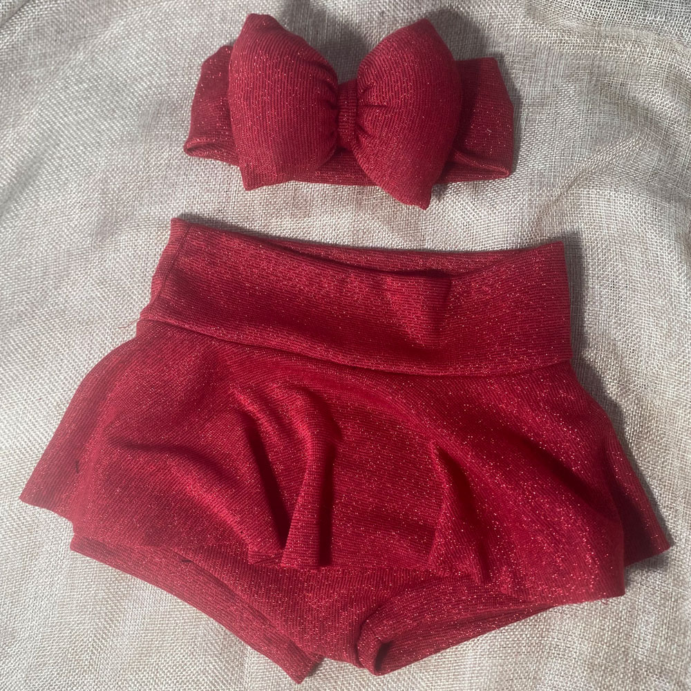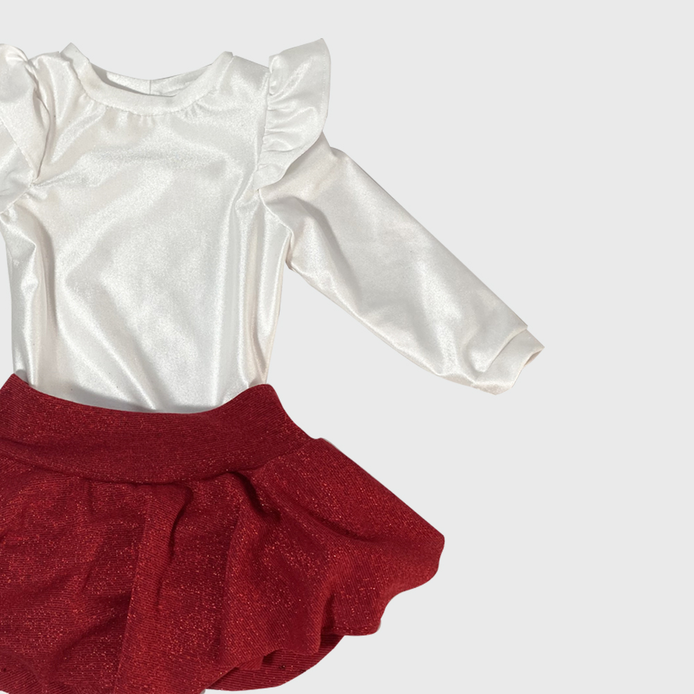 Σετ κορμάκι λούρεξ φούστα μπορντό και κορδέλα