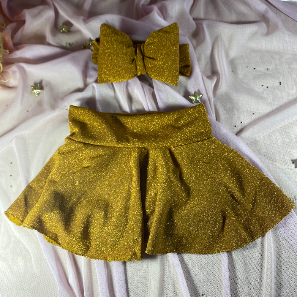 Σετ κορμάκι φούστα-σορτσάκι και κορδέλα χρυσό