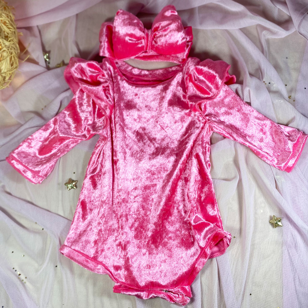 Σετ κορμάκι κολάν και κορδέλα βελούδινο ροζ