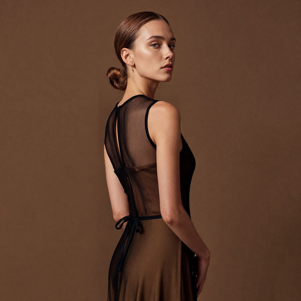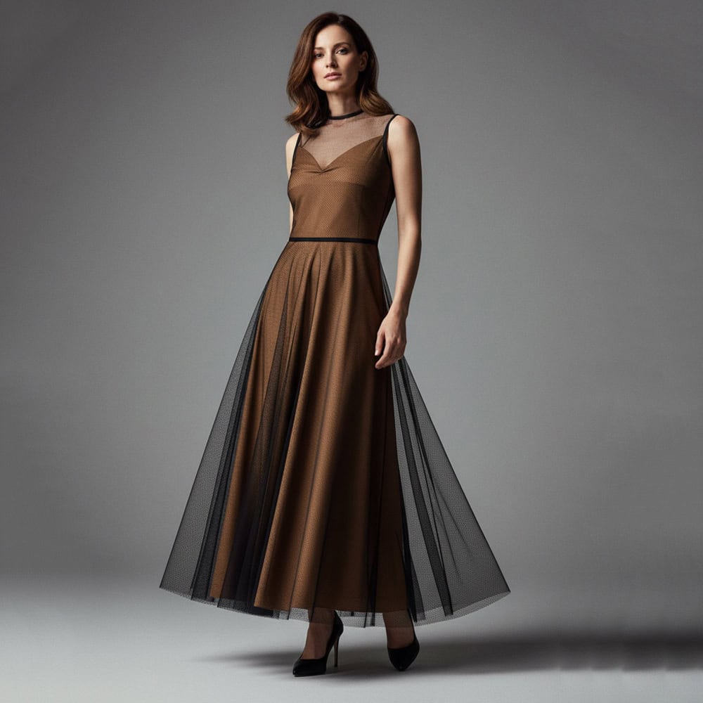 Φόρεμα camel μαύρο τούλι με maxi Black tea dress