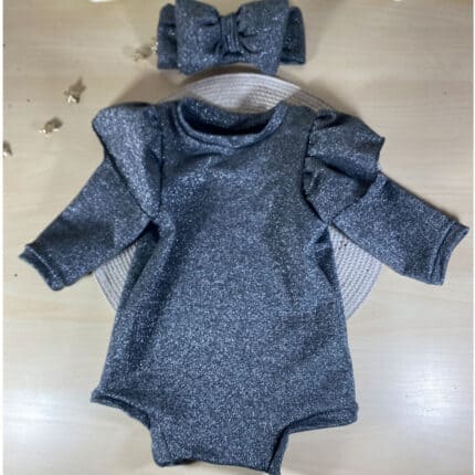 Κορμάκι Λούρεξ Μαύρο Ασημί με Κορδέλα Βρεφικό Παιδικό