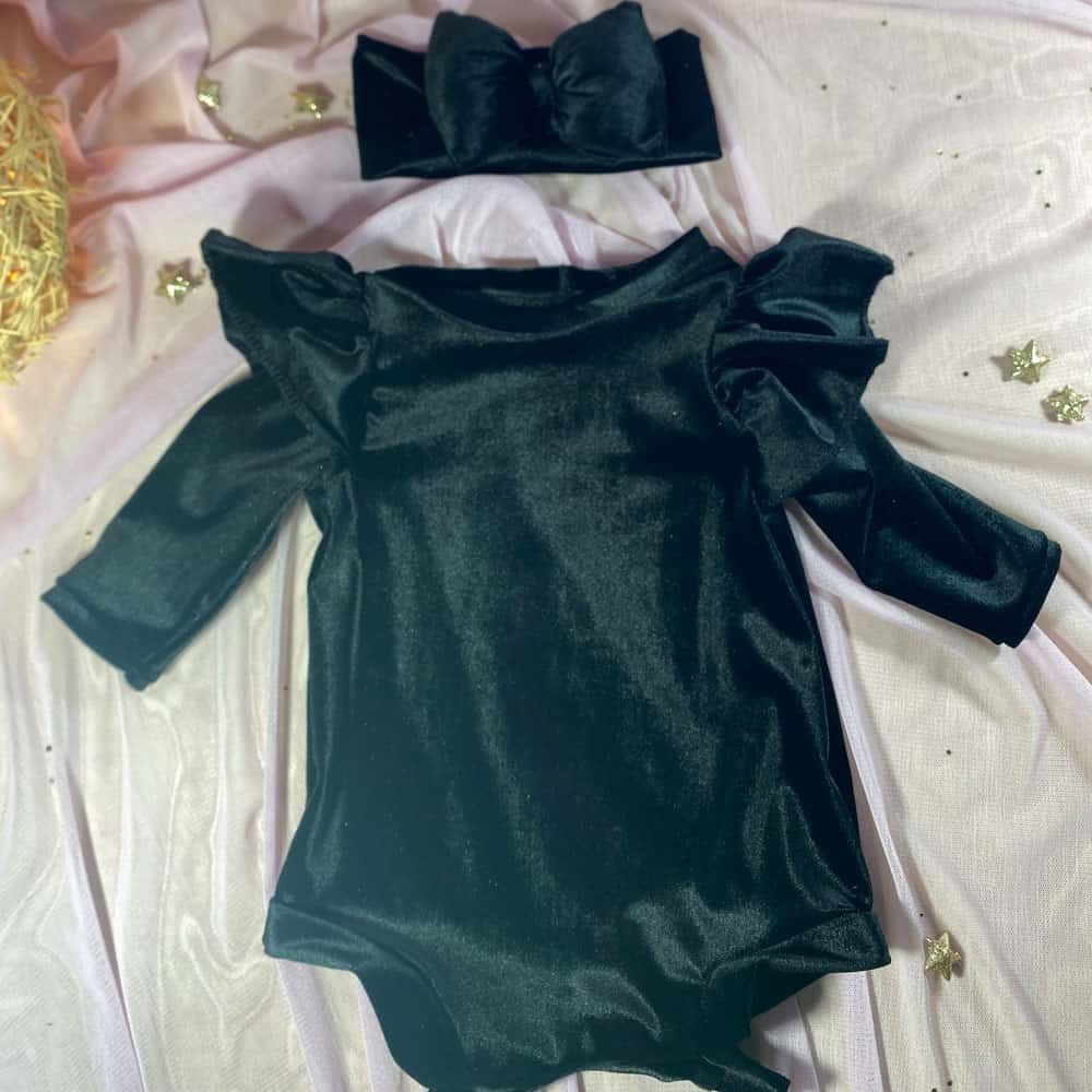 Βρεφικό Παιδικό Σετ Κορμάκι Βελούδινο Μαύρο με Κορδέλα