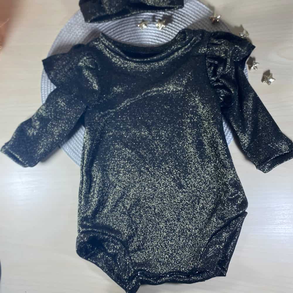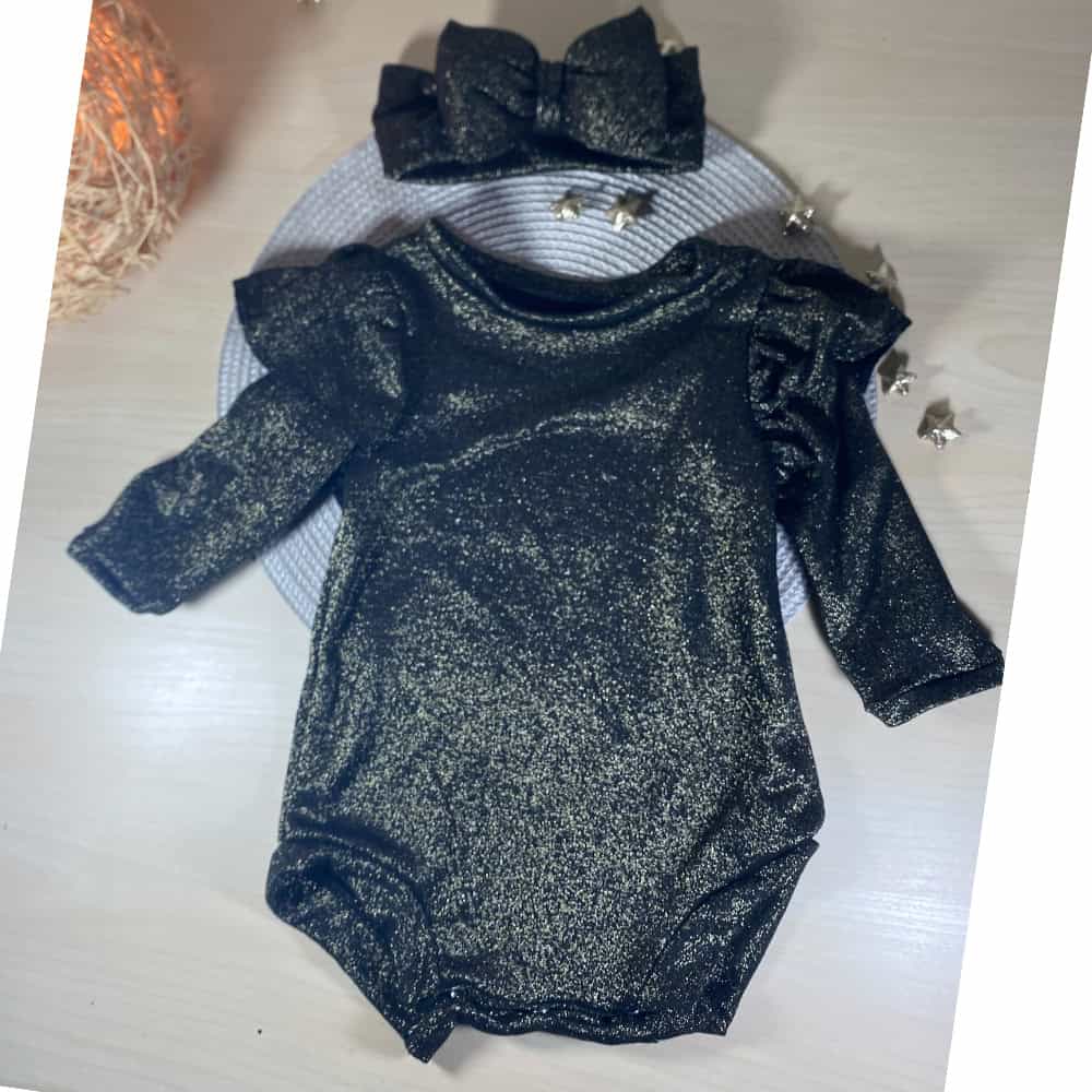 Βρεφικό Παιδικό Κορμάκι Μαύρο-Χρυσό Γυαλιστερό με Κορδέλα