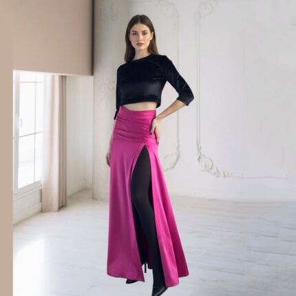 Μάξι Φούστα Κρεπ Σατέν με Σκίσιμο ροζ