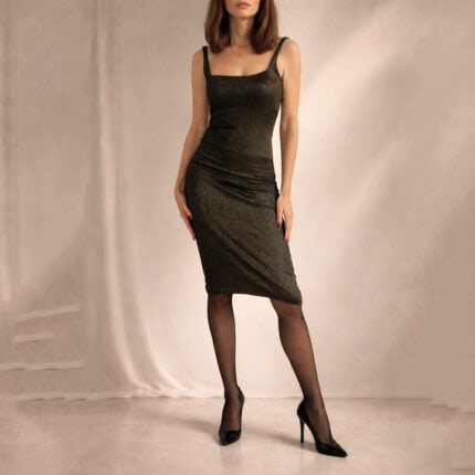Elegance Midi Φόρεμα σε Μαύρο-Χρυσό