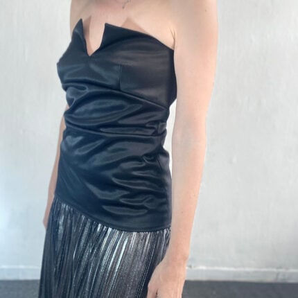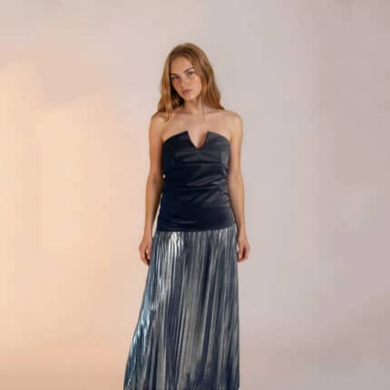 Σετ Μαύρος Κορσές με Ασημί Πλισέ Φούστα maxi
