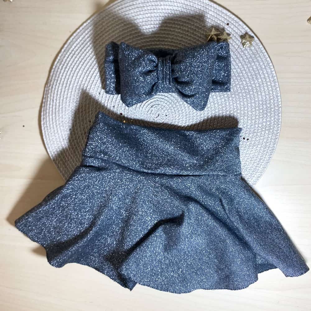 Βρεφικό-παιδικό σετ που περιλαμβάνει φούστα και κορδέλα σε μαύρο και ασημί χρώμα. Άνετο και κομψό, ιδανικό για καθημερινή χρήση αλλά και ιδιαίτερες περιστάσεις.