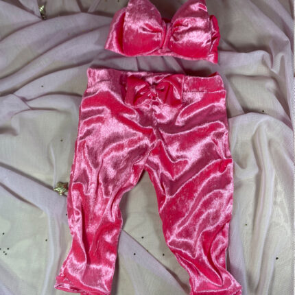 Σετ κορμάκι κολάν και κορδέλα βελούδινο ροζ