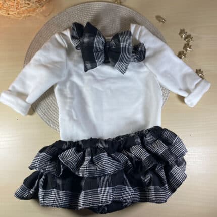 Βρεφικό Παιδικό Σετ Κορμάκι, Φούστα Σορτσάκι και Κορδέλα Μαύρο-Χρυσό