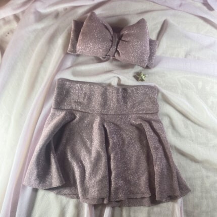 Βρεφικό–παιδικό σετ 3 τεμαχίων με λούρεξ κορμάκι, μπορντό φούστα και ασορτί κορδέλα. Κομψή και άνετη επιλογή για γιορτινές εμφανίσεις και ιδιαίτερες περιστάσεις.