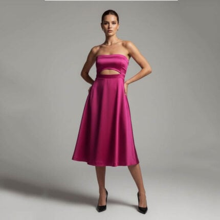 Elegant Ματζέντα Στράπλες Μίντι Φόρεμα Wedding Guest