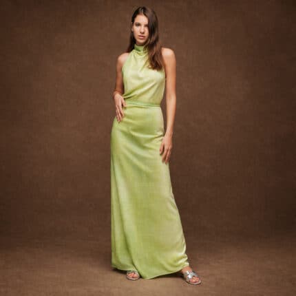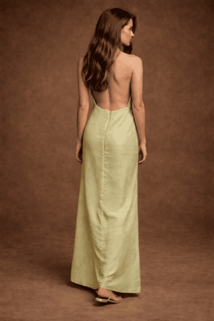 Εντυπωσιακό Εξώπλατο Maxi Φόρεμα σε Lime Πράσινο